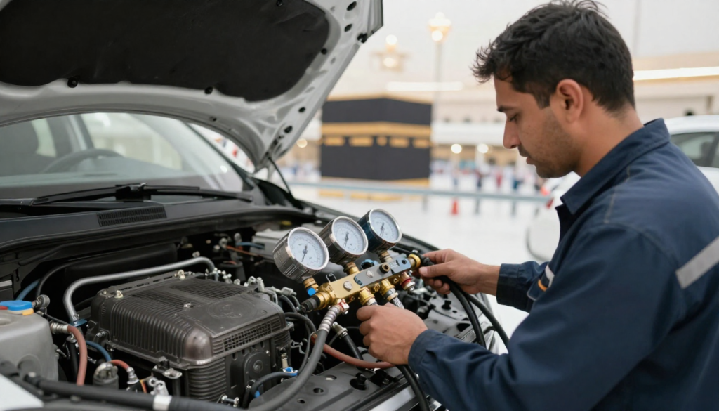 Due to high temperatures that often exceed 45°C, car AC systems in Makkah face continuous pressure. Without regular maintenance, AC performance can decrease, leading to weak cooling, bad smells, or complete failure.